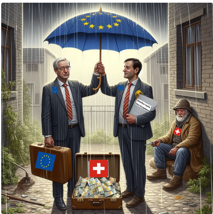 Oui à une collaboration volontaire avec l’union Européenne, non à des accords forcés qui nous ruineraient et nous priveraient de notre démocratie directe. Dans Les nouveaux accords avec l’UE la Suisse s'engage à reprendre plusieurs droits de l'UE, comme par exemple l'accord sur la libre circulation des personnes et encore bien d’autres. La suisse s’est engagée dès 2030 à verser 350 millions de francs par année à l’UE, aujourd’hui déjà la Suisse verse 130 millions de francs annuellement à l’union Européenne, en plus de cela, ces 20 dernières années la Suisse a versé un supplément de 1,302 milliard à 13 pays d’Europe pour divers projets.